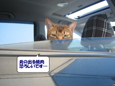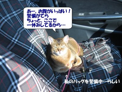 ベルは車に一時避難。
