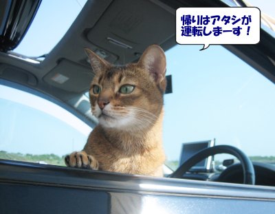 いつもは後部座席が多いのですが、今日は助手席です。