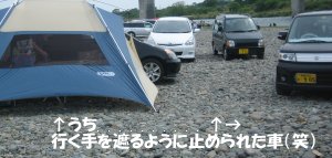 我が家の車の前にも止められ、狭い区画のキャンプ場状態(笑)