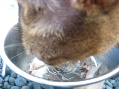 ベルにはアジをほぐして。