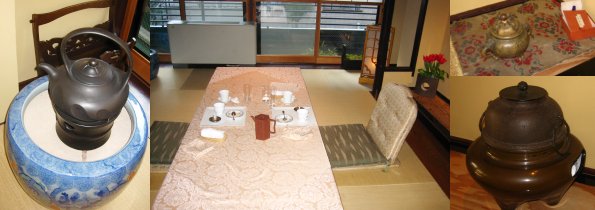 床には茶釜があり、香炉も隣にちょこんと。お香の「伽羅」が添えてありました。